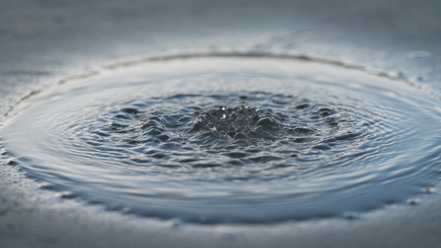 Rain droplets creating ripples in a roadside puddle