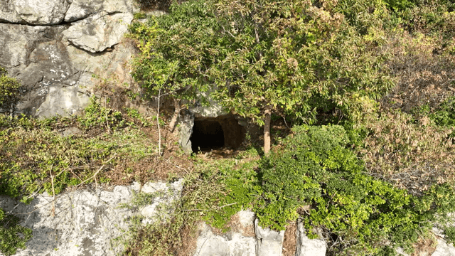 Inside a rocky cave with a small hole