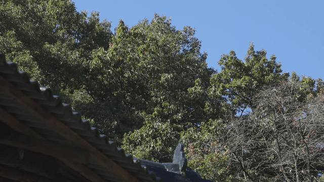 Green forest with traditional tile roofs