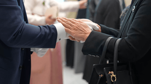 Groom greeting bride’s parents at a wedding