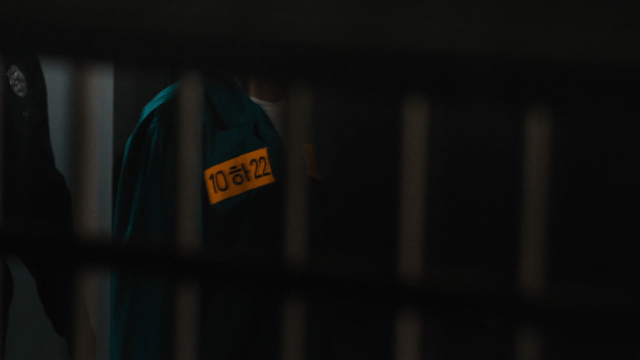 Prisoner coming down dark staircase