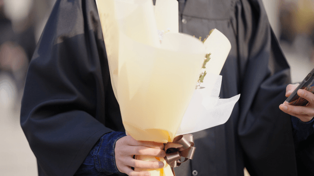 Graduate holding a bouquet of flowers
