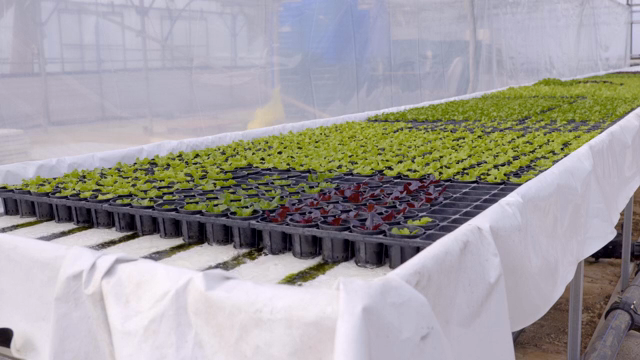 Young plants growing in a greenhouse