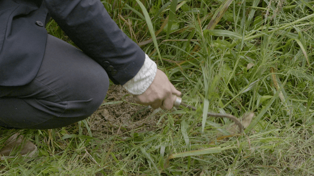 Person weeding the soil in a field