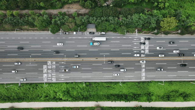 Busy highway surrounded by greenery