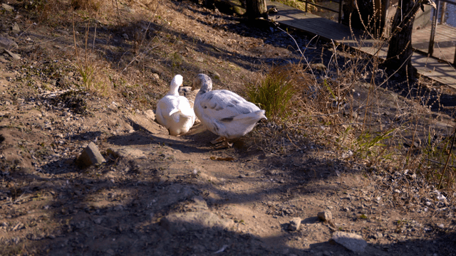 Ducks Running Around Looking for Food on the Dirt