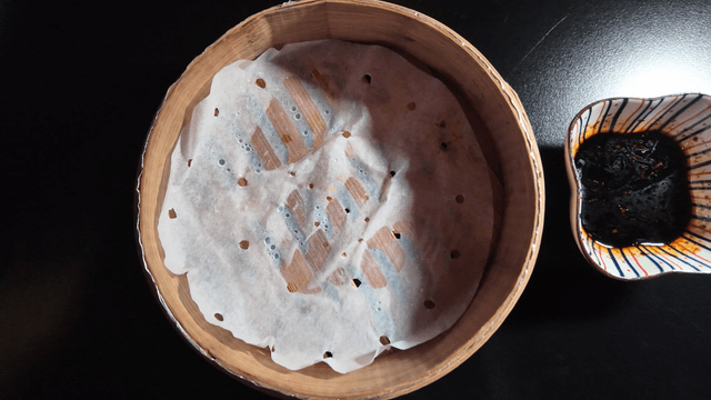 Steamed bread in a bamboo steamer