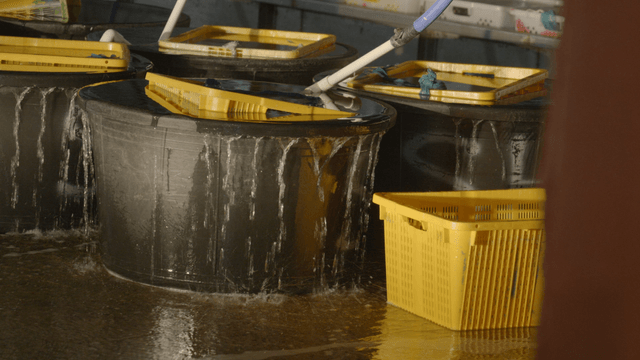 Fish Harvesting Bins and Tools in Use