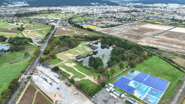 Aerial view of a historic Korean fortress