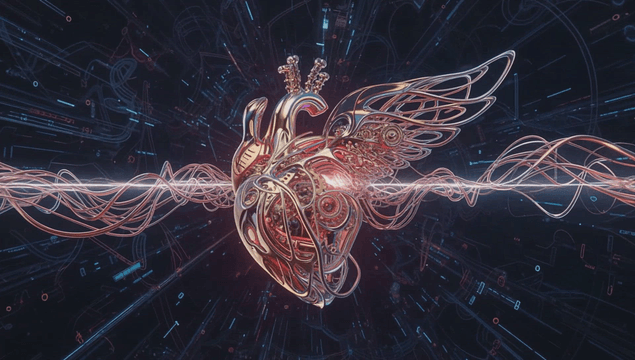 Futuristic mechanical heart with wires