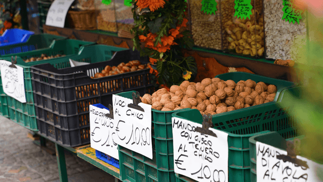 Various ingredients arranged on a market stall