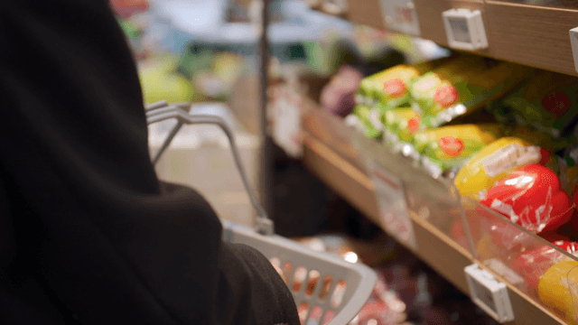 Fresh vegetables and fruits in a basket on a wooden table outdoors