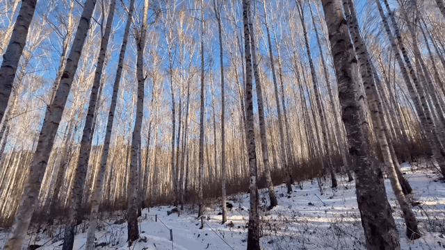 Walking Through a Snow-Covered Birch Forest