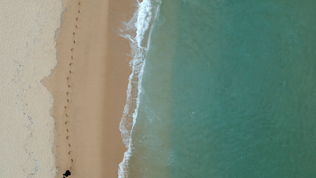 Person Walking on the Sandy Beach with Pants Rolled Up