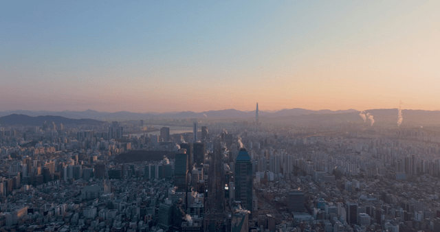 Sunny panoramic view of Gangnam skyline