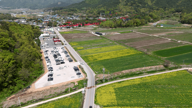 Expansive rural farmland and village
