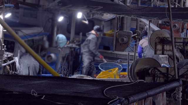 Fishermen Putting Fresh Squid into the Fishing Boat's Hold