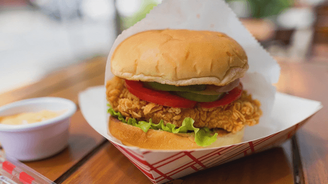 Holding a chicken burger