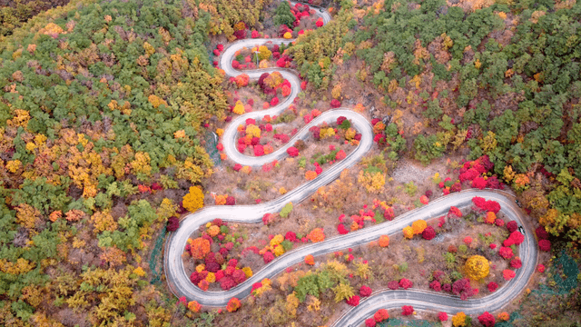 Winding roads with autumn foliage