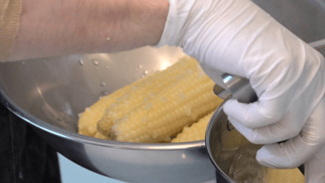 Corn boiling in a pot of water