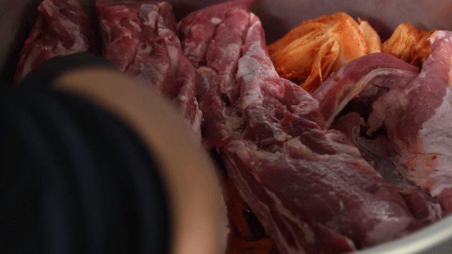 Kimchi stew filling pot