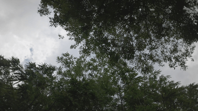 A lush green forest under a cloudy sky