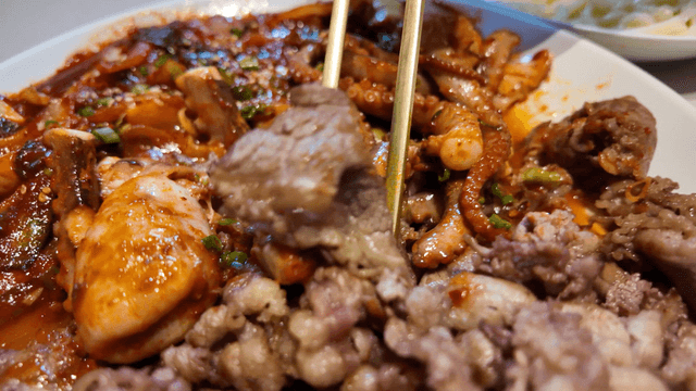 Spicy stir-fried octopus and beef bulgogi dish