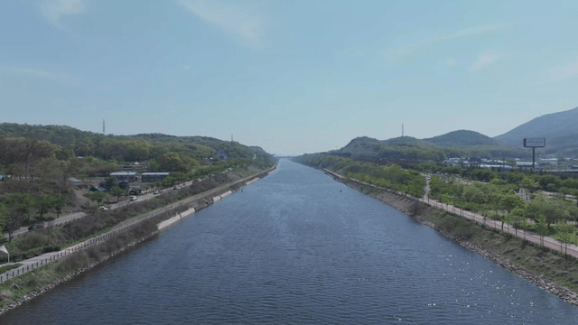 River flowing next to a wide landscape