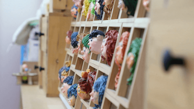Cork tree dolls displayed on shelf
