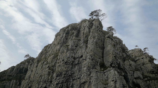Alone tree growing on a rocky cliff
