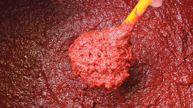 Red chili paste made by mixing various ingredients with a spatula