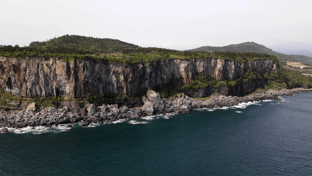 Serene coastal cliff with clear waters