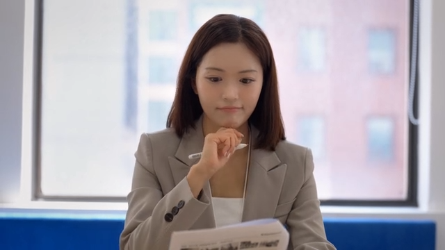 Woman focused on reading a document