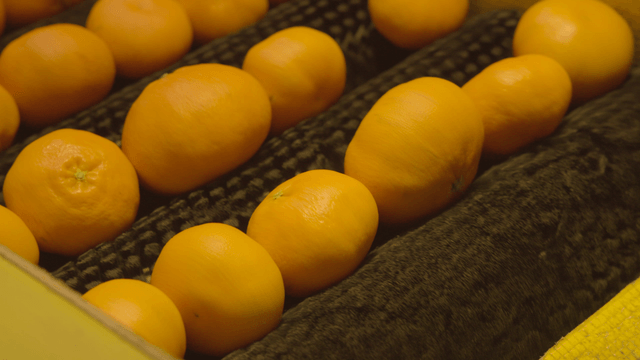 Mandarins on a conveyor belt in a factory