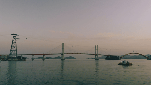Bridge and cable car over wide sea