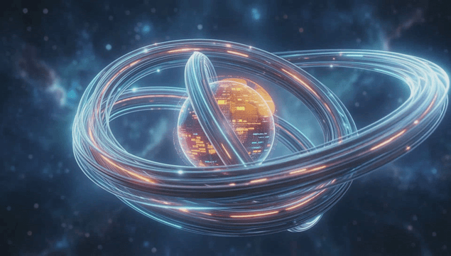 Glowing digital sphere in a futuristic setting