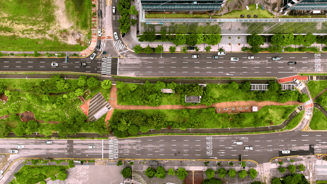 Bustling City Intersection and Sparkling Buildings at Dusk