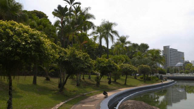 A scenic park with lush greenery