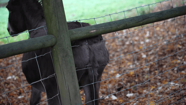 Donkey grazing in a fenced area