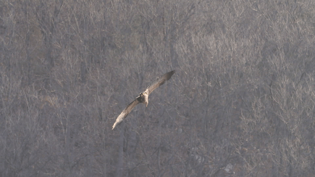 Forest landscape flown over by white-tailed eagle