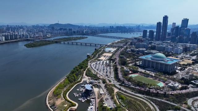 Spring Day in Yeouido with Cherry Blossoms in Full Bloom