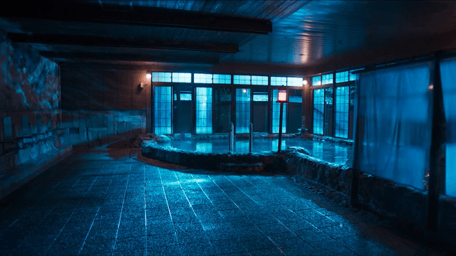 People enjoying a hot spring in winter
