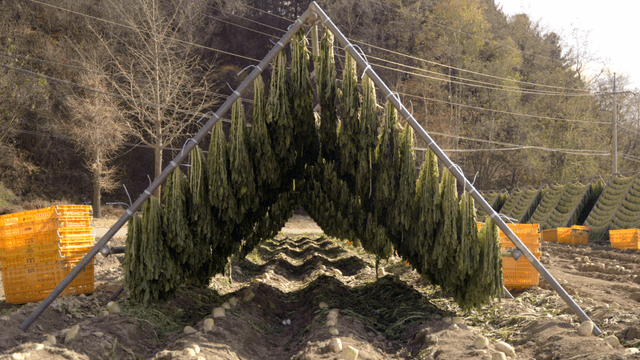 Harvesting Fresh Korean Thistle in the Sunlit Field