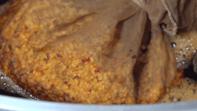Chili seeds added to a boiling large pot