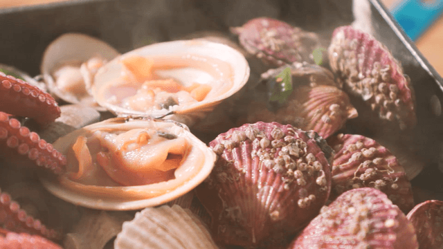 Steaming Seafood Hot Pot with Various Shellfish and Octopus