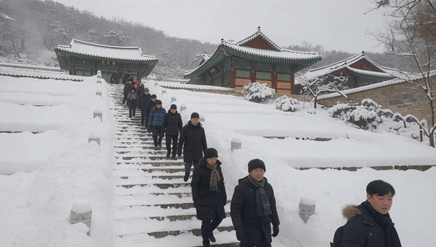 Entrance of a Seonamsa Temple with decorative wooden doors and stone steps