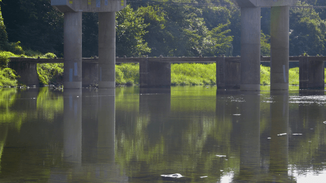 Serene river flowing under a bridge
