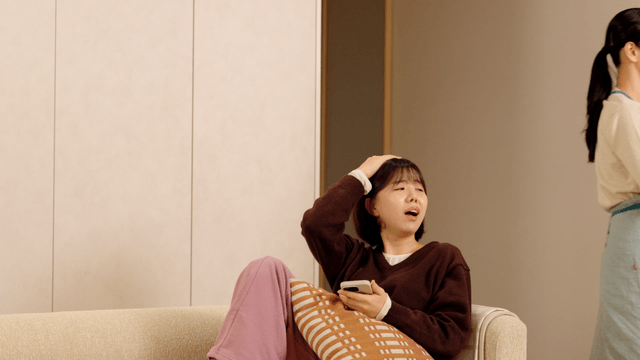 Daughter who enters room roughly and mother who knocks on door