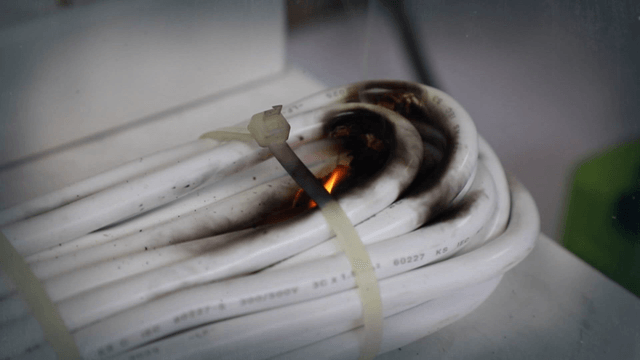 Damaged electrical cables on a surface