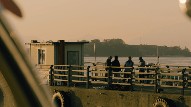 Two people taking pictures of the scenery at the pier on a cloudy day